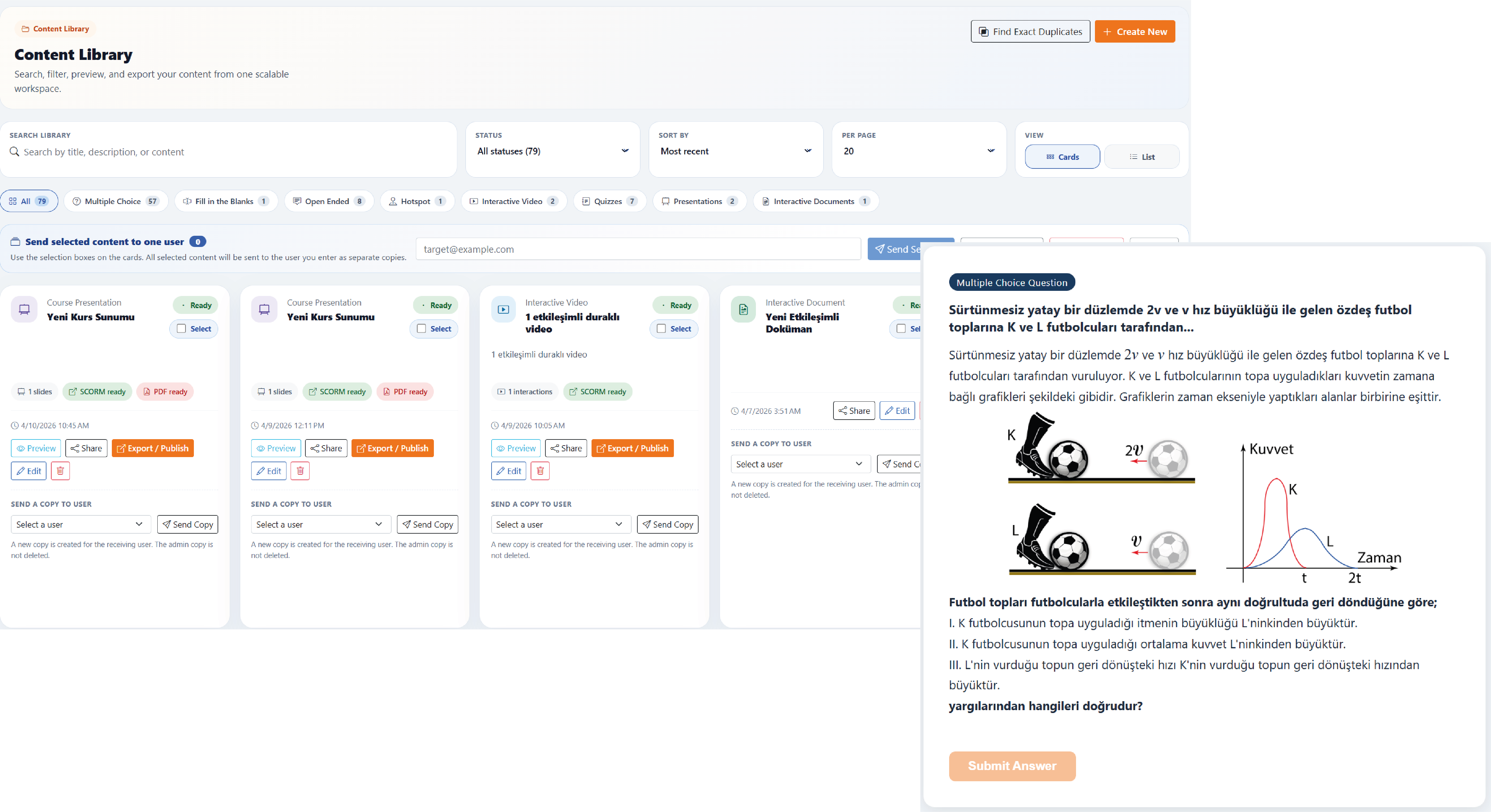 PDF; okuma, yazdırma, sakin paylaşım ve arşivleme için daha uygundur. SCORM ise içeriğin bir LMS içinde takip edileceği, paket halinde aktarılacağı ve sistemle konuşacağı senaryolarda anlam kazanır.